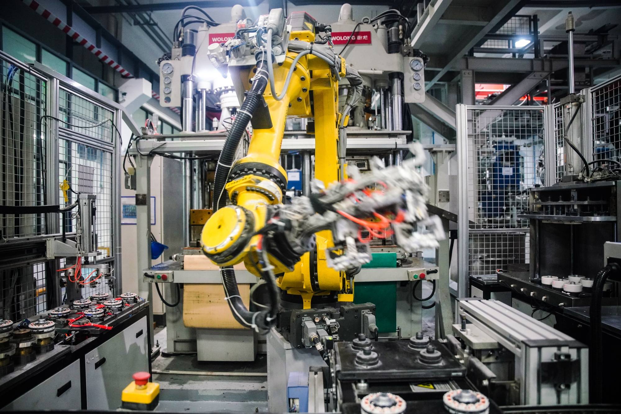 来到绍兴市上虞经济开辟区卧龙电气驱动集团股份无限公司(以下简称卧龙电驱)新能源聪慧财产园,一个高度从动化、智能化的将来工场跃然面前:工业机械人机械臂精准挥舞,从动识别AGV小车有序穿行,出产数据正在地方大屏上及时跳动——这里,就是空调电机的“黑灯”工场。